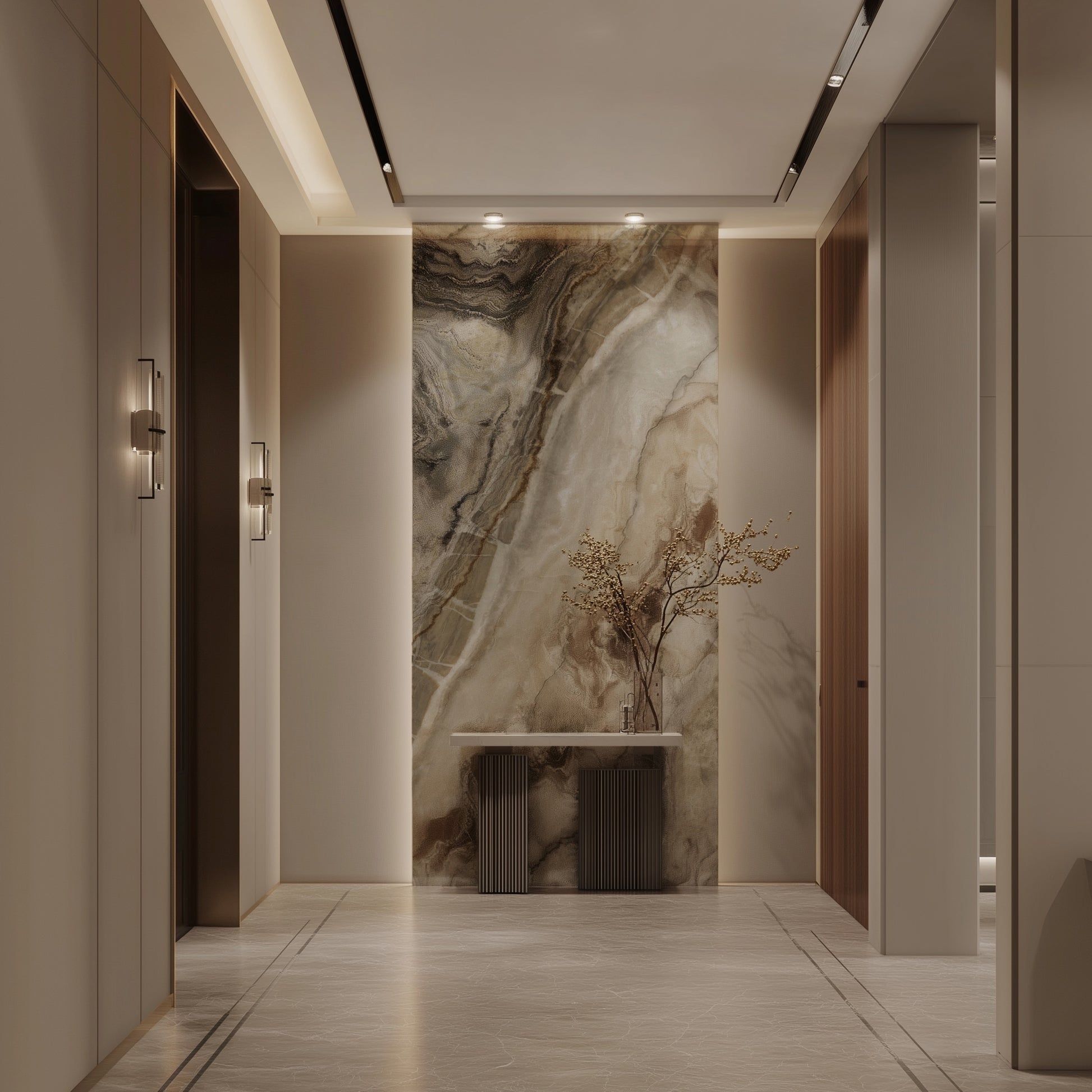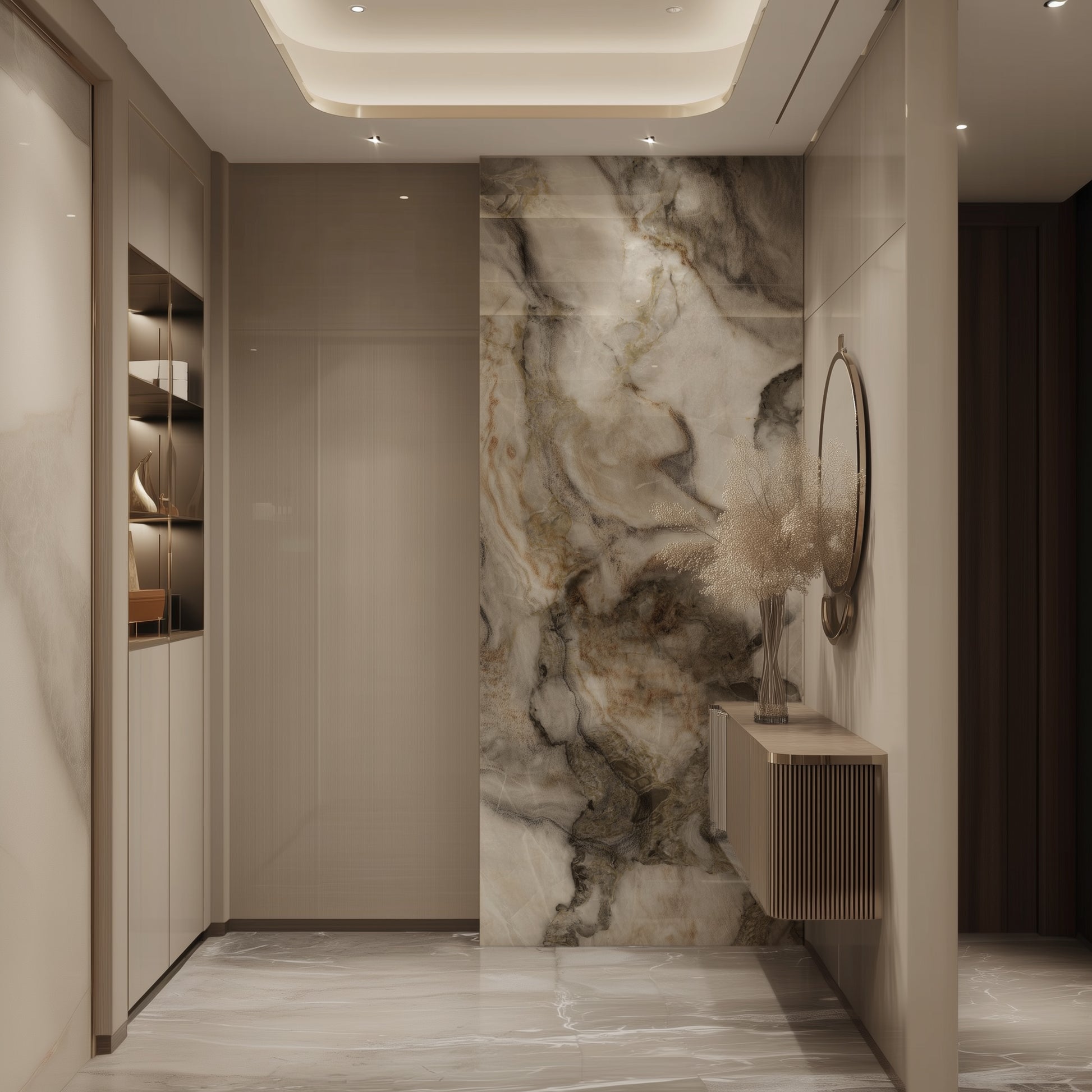 تضفي التعرّقات الناعمة والعمق المتلألئ في هذا التصميم جواً راقياً، مثالياً للمداخل، غرف المعيشة، أو المساحات البوتيكية.