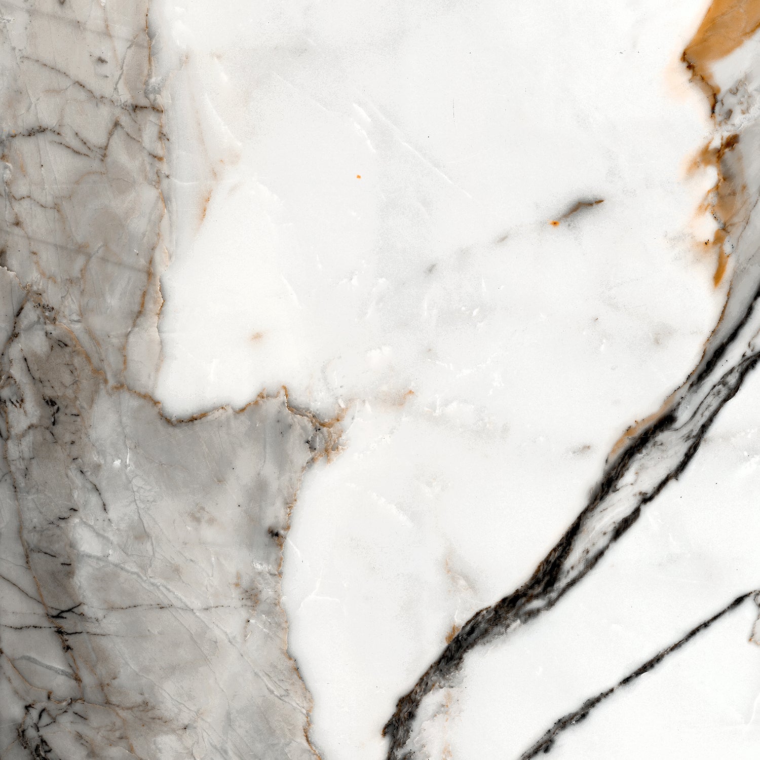 تعزز لمسات العنبر الدافئ والتوب الفاتح من رقي التصميم، مضيفة بُعدًا إضافيًا من التعقيد والجمال. يُعد نمط Calacatta Majestic مثاليًا لإنشاء جدران مميزة في المساحات الفاخرة، حيث يضفي لمسه من الإشراق بفضل سطحه اللامع الذي يعكس الضوء الطبيعي، مما يمنح المساحة إحساسًا بالاتساع والرقي.