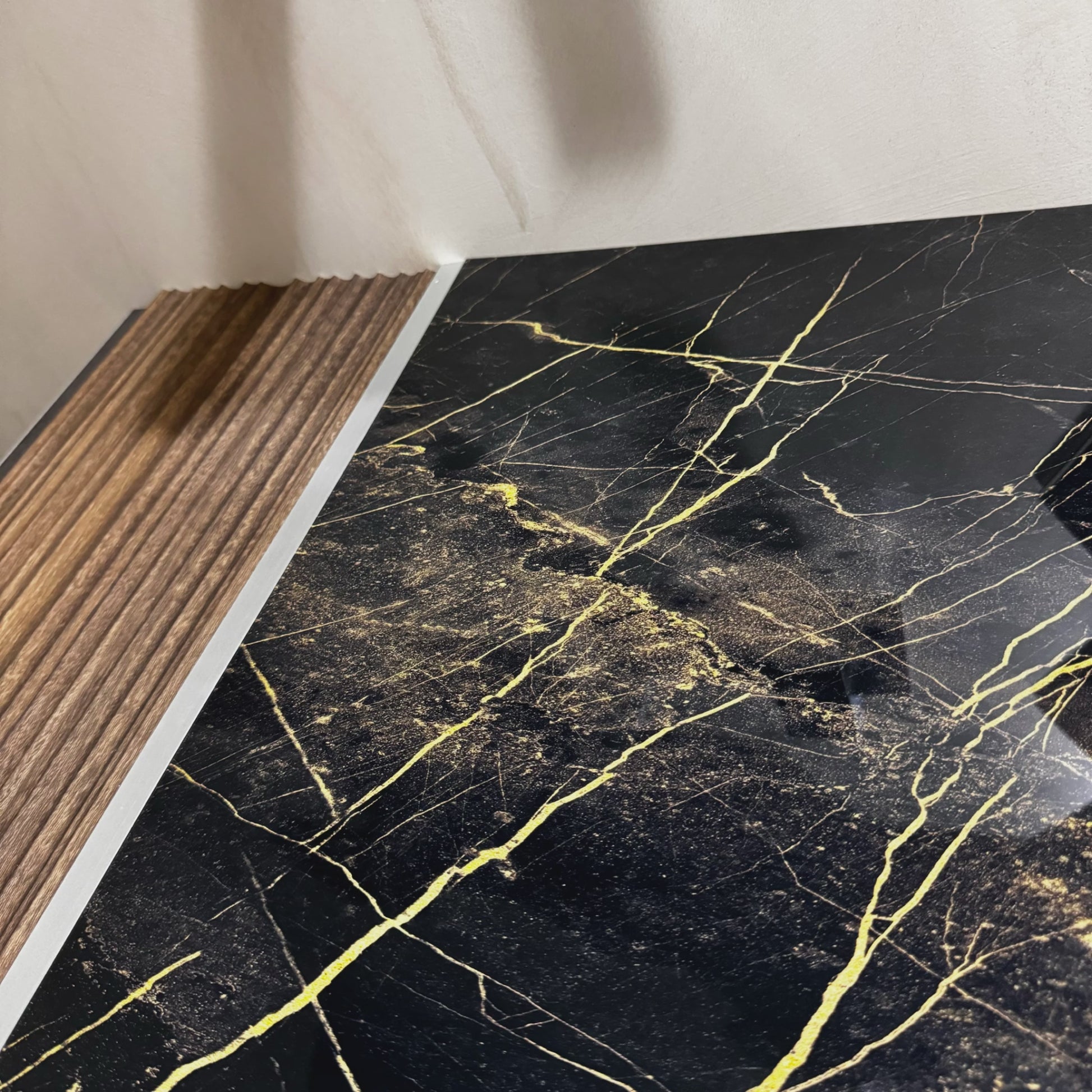 تمتد العروق الذهبية في تصميم Marquinia Gold بتفاصيل دقيقة تحاكي الأنماط العشوائية والعضوية للطبيعة، مما يضفي إحساسًا بالعمق والحركة ويعزز من جاذبية الألواح البصرية، لتصبح نقطة محورية مثالية لأي مساحة.