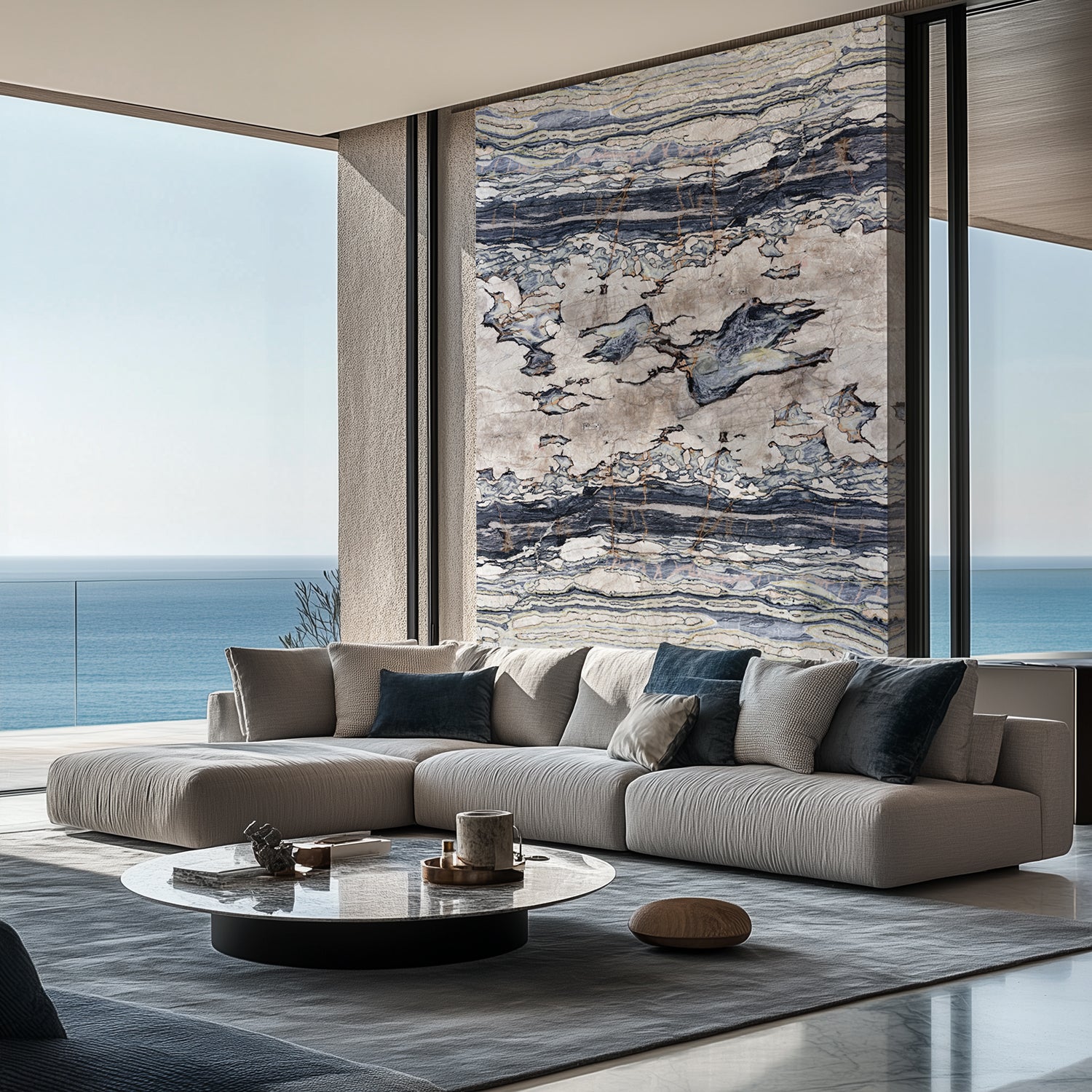 Oceanic Majesty marble wall panels by ARKdeko evoke the mesmerizing beauty of the sea. With swirling veins and shades of blue, azure, and sandy tones, these panels capture the essence of ocean colors and seashores, bringing a sense of serenity and tranquility to any space.